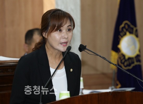 ▲ 최선경 의원 5분 발언을 통해 “홍주미트 주식매각”특혜의혹, 절차상 하자, 집행부의 의회 경시 태도 등의 문제를 지적했다.