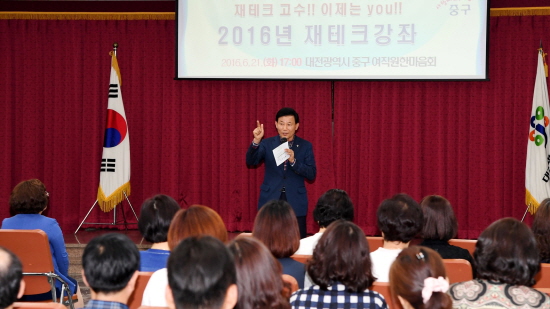 대전 중구청 여직원 한마음회(회장 정영희)는 21일 구청 대회의실에서 현명한 소비와 지출로 노후설계를 지원하기 위해 전문가 초청 ‘재테크 강좌’를 150여 명의 직원들이 참석한 가운데 개최했다고 밝혔다.