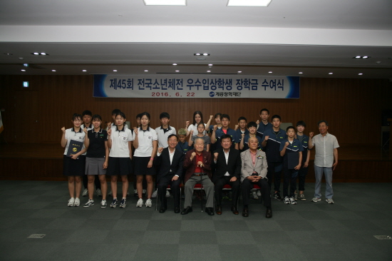 계룡장학재단이 22일 오후 3시 계룡건설강당에서 대전광역시 설동호 교육감, 대전광역시 체육회 임종열 사무처장, 지도교사, 학생, 학부모 및 계룡장학재단 임원 등 50여명이 참석한 가운데 제45회 전국소년체육대회에서 우수 입상한 대전광역시 초․중학생들에게(레슬링 1관왕 대전체육중 유주상 外) 장학금을 지급하고 격려했다.