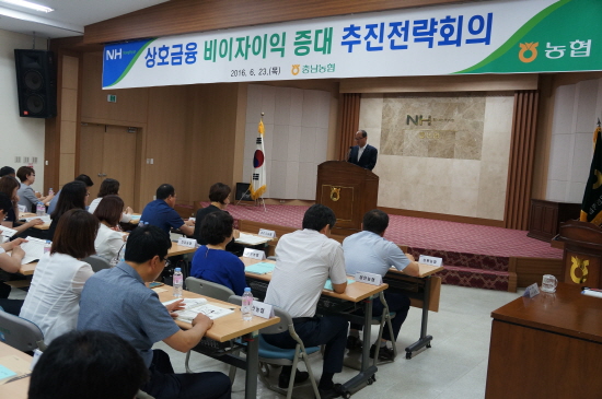 농협 충남지역본부(본부장 유찬형)는 23일 지역본부 회의실에서 충남지역 농·축협 신용상무 144명을 대상으로 2016년 하반기 상호금융 사업추진 전략회의와 더불어「발로 뛰는 마케팅」발대식을 동시에 개최했다고 밝혔다.