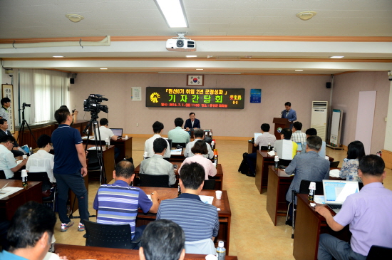 충남 김석환 홍성군수는 1일 민선6기 출범 2년을 맞아 회의실에서 기자간담회를 갖고 군정성과를 발표하는 시간을 가졌다고 밝혔다.