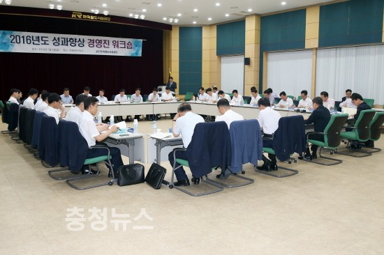 한국철도시설공단(이사장 강영일)은 지난1일 청주 오송 공단 교육장에서 본사 처장 이상 간부진 40여명이 참석한 가운데 ‘경영성과 향상을 위한 2016년 경영진 워크숍’을 개최했다고 밝혔다.