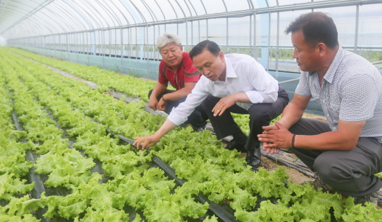 구본영 시장은 이날 북면 연춘1리 김재희씨(48세, 작목반 총무) 비닐하우스에서 채소 수확작업에 직접 참여했다.