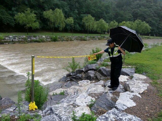 대전동부경찰서(서장 박종민) 산내파출소(소장 박은규)는 7월 4일 09:00경 대전시 동구 관내 하상도로 진입로 4개소와 대전운전면허시험장 앞 대전천 징검다리 8개소에 대하여 주민안전을 위해 임시 통행을 차단하였다고 밝혔다.