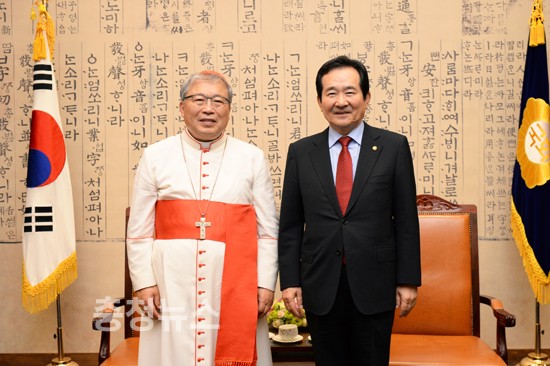 정세균 국회의장은 7월 4일 오후 1시30분, 의장 접견실에서 염수정 추기경의 예방을 받았다.