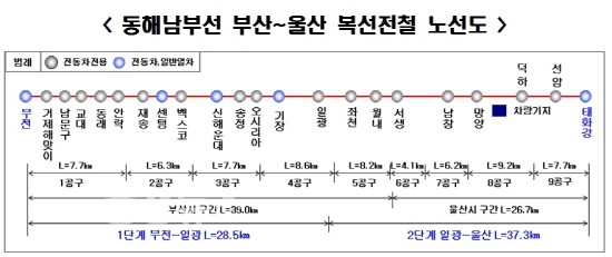 - 종합시험운행 사전점검 진행 중... 2단계 일광~태화강 구간은 2018년 개통