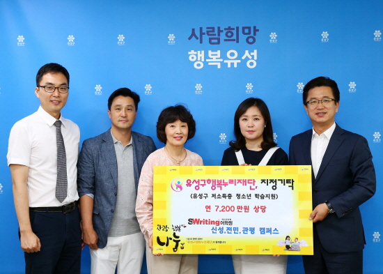 이날 전달받은 수강증은 유성구행복누리재단에 지정 기탁돼 각 캠퍼스별 매월 10명, 모두 30명의 저소득층 학생들에게 지원된다.