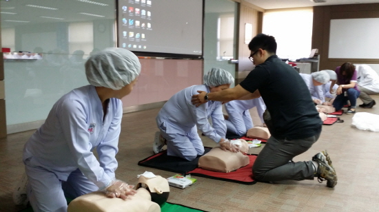 이번 교육은 순천향대학교 천안병원 응급의학과 교수를 초빙하여 산업체 근로자를 대상으로 현장에 직접 찾아가 응급상황이 발생한 경우 기본적인 응급처치와 심폐소생술 및 자동제세동기 사용법에 대해 교육을 실시했다.