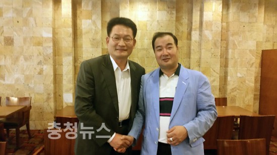 ▲ 송영길 의원과 9일 유성호텔에서 충청뉴스 김거수 대표기자 인터뷰중 기념 사진