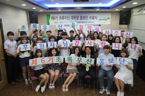 한편, 초록우산 대학생 홍보단은 지역 대학생을 대상으로 국내ㆍ외 빈곤아동의 현실을 알리고 나눔 문화를 활성화하기 위한 캠페인을 기획ㆍ진행하는 자원봉사프로그램이다.