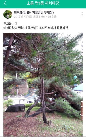 위험요소를 신고했던 주민은 “폭우가 쏟아진 후 쓰러져있는 나무를 보고 동 밴드에 글을 올렸는데 직원이 답글과 함께 얼마 뒤 해결된 사진까지 올려주니 정말 믿음직스러웠다”고 전했다.