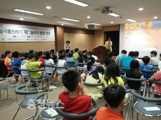 ▲ 어린이들이 환경자원사업소에 견학을 통하여 가정에서의 음식물쓰레기 낭비의 심각성을 스스로 느끼게 했다.
