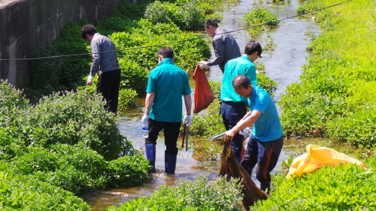 특히, 7월은 장마철 폭우로 도랑에 넘어진 수초를 제거해 물길을 터주고, 적치된 폐비닐‧쓰레기‧나뭇가지 등을 제거하는 등 정화활동에 구슬땀을 흘렸다.