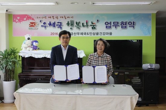 충남 금산우체국(국장:유재정)과 사회복지법인 인삼골건강마을은 ‘따뜻한 겨울나기 행복나눔’ 행사를 통해 소외계층에게 복지 서비스를 제공하기 위한 업무협약을 체결했다고 밝혔다.