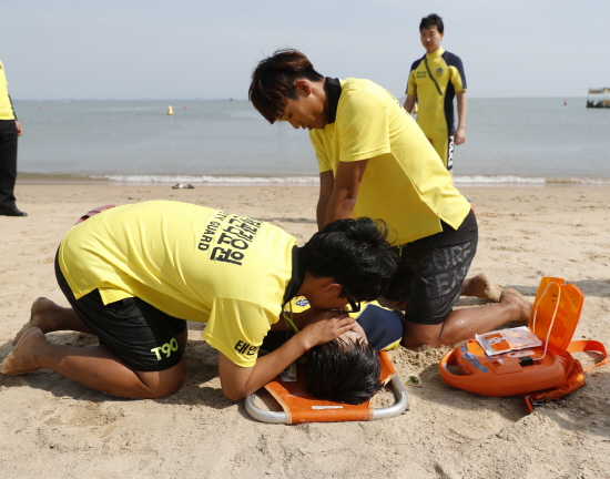 군은 물놀이를 하던 피서객 1명이 수영 미숙으로 익수사고를 당했다는 가상 상황을 설정, 실제적이면서도 실효성 있는 훈련에 초점을 뒀으며 △사전 준비 △긴급신고 △출동구조 △응급조치 △환자 이송 등 매뉴얼에 따른 훈련에 이어 훈련 상황 전반을 최종 점검하는 강평을 실시했다.