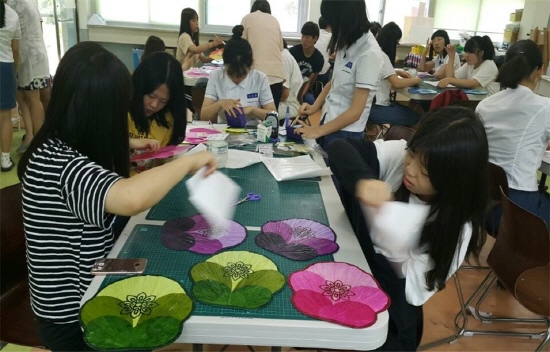 손가락에 풀이 묻고 손끝이 한지 색으로 물들어 가도 개의치 않고 어르신들에게 드릴 선물을 완성했다. 재료 준비에다가 한지 공예가 서툴기도 하고 말리고 관리하는 과정 등에 정신없이 바빴지만 이 교사는 학생들에게 배움과 나눔의 기쁨을 알리며 학생들을 다독거렸다.
