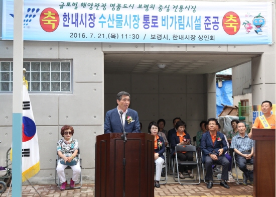 충남 보령시가 전통시장 시설 현대화로 이용객의 편의를 높여 고객유치에 총력을 기울이기 위해 추진한 비가림시설의 준공식을 21일 한내시장에서 가졌다고 밝혔다.