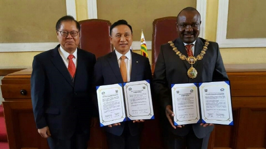 한편 하라레시와의 우호협력 체결은 글로벌 민선6기 첫 번째 공식 교류 체결도시이자 천안시의 자매 및 우호도시인 미국 비버튼시, 중국 스자좡시, 웨이하이 원덩구, 터키 뷰첵메제시에 이어 5번째 교류도시로 등록되며 향후 천안시 우수정책 전수와 지구촌 마지막 블루오션인 아프리카와의 시장진출 등 교류협력을 기대할 수 있게 됐다.