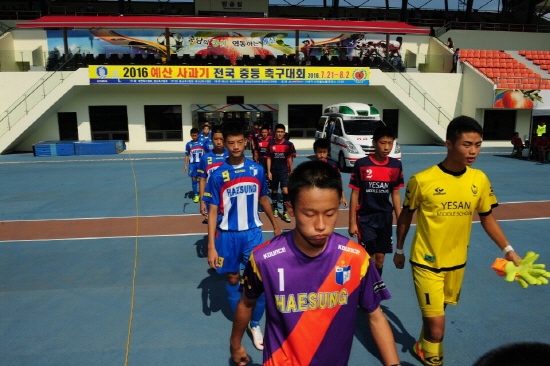 2016 예산사과기 전국중등축구대회가 21일 예산중과 전주해성중의 개막경기를 시작으로 다음달 2일까지 13일간의 일정을 시작했다고 밝혔다.