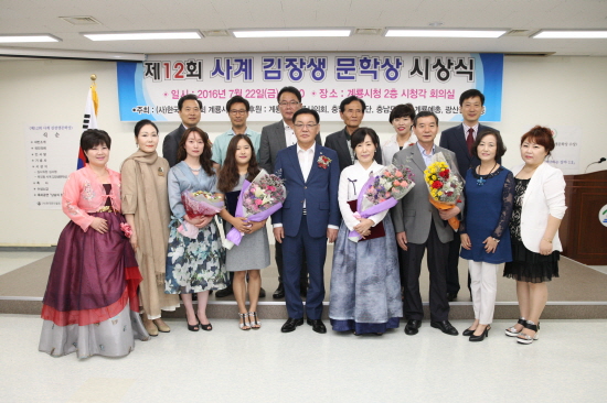 충남 계룡시(시장 최홍묵)는 지난 22일 시청 회의실에서 (사)한국문인협회 계룡지부(지부장 정유지)가 주관한 제12회 사계 김장생 문학상 시상식을 개최했다고 밝혔다.