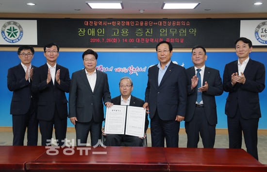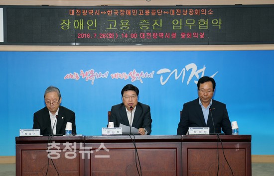 대전광역시(시장 권선택)는 26일(화) 오후 2시 시청 중회의실에서 한국장애인고용공단, 대전상공회의소와 장애인고용증진을 위한 업무협약을 체결했다고 밝혔다