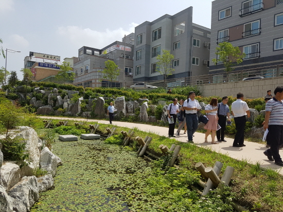 ▲ 생태하천 온천천 중국 하남성이 벤치마킹 방문 (사진제공-아산시청)
