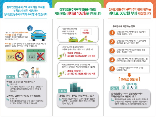 시 관계자는 “최근 아파트 단지, 대형마트, 공공시설물 등 장애인전용주차구역 주차위반 차량에 대하여 「생활불편 스마트폰신고」을 통하여 신고가 대폭 증가하고 있어 주차할 때 한번 더 신경을 써야 한다”며 “장애인전용주차구역의 올바른 이용문화 확산과 장애인의 이동편의 보장 및 장애인이 주차하는데 불편함이 없도록 비장애인은 단 1분도 주차할 수 없음을 인식하고 관심과 협조를 바란다”고 말했다.