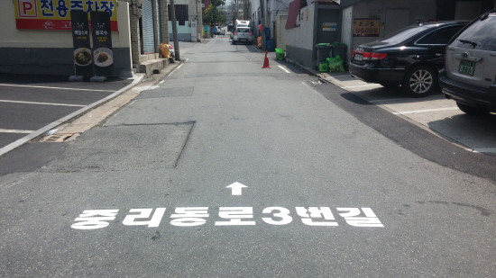 대전 대덕구(구청장 박수범)는 시민들이 보다 쉽게 목적지를 찾고 도로명주소 활용도를 높이기 위해 보행자의 통행이 많은 중리동 주민센터 인근 도로 바닥에 도로명을 표기했다고 1일 밝혔다.