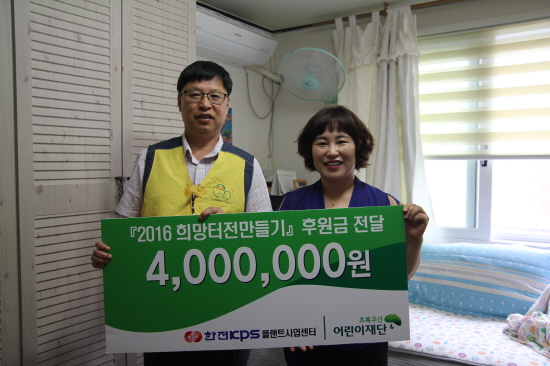 초록우산어린이재단 대전지역본부(본부장 함영신)는 8월 2일(화) 동구 가양동에 거주하는 아동 1명의 집에서 한전KPS(주) 플랜트사업센터(처장 김도섭) 관계직원이 참석한 가운데 희망터전 만들기 후원금 400만원 전달식을 가졌다고 밝혔다.