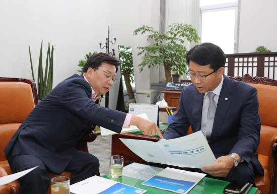 정진석 새누리당 원내대표, 조정식 국토교통위원장 만나 지원 요청