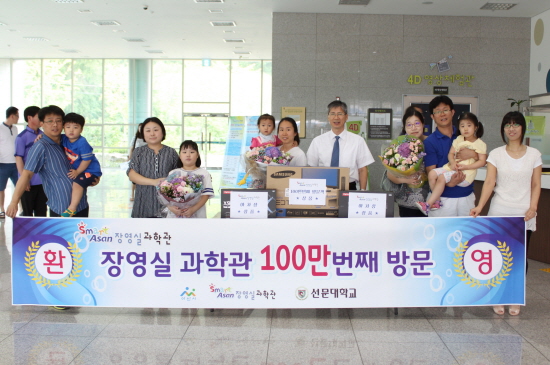 충남 아산장영실과학관(관장 이상옥)은 8월 2일 누적 관람객 100만 명을 돌파하며100만 번째 관람객 축하 행사를 열고, 선정된 관람객에게 소정의 상품과 과학관의 연간 이용권을 증정했다고 밝혔다.