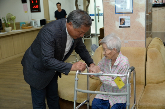 지난 2일 기록적인 폭염주의보가 계속되고 있는 가운데 이 군수는 폭염에 취약한 어르신들의 건강을 살피며, 시설을 점검했다.