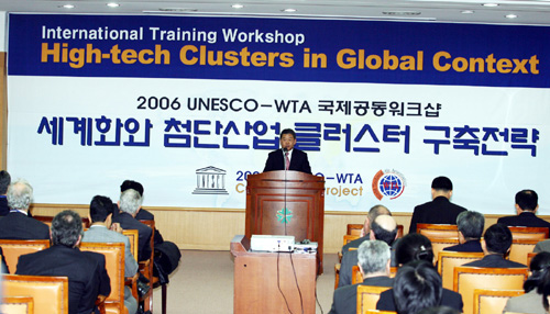 대전시 주도로 1998년 창설된 WTA(세계과학도시연합)와 유네스코간 공동협력사업이 첫 받을 내딛었다. WTA와 유네스코가 2010년까지 5개년 공동협력사업의 일환으로 추진하는 공동워크숍이 ‘첨단산업 클러스터 구축방향'을 주제로 6일부터 10일까지 대전시청 대회의실에서 열리는 것.