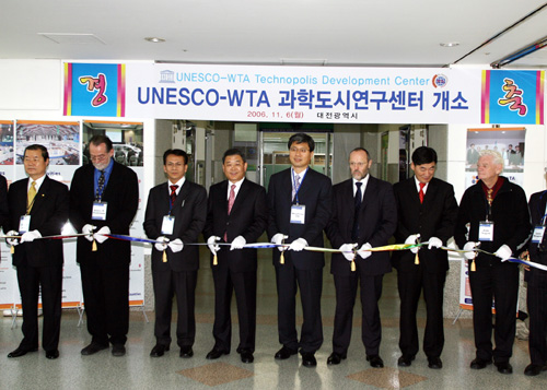 한편 유네스코-WTA 과학도시 연구센터도 6일 대전시청에서 개소식을 갖고 국내 최초로 과학기술 관련 분야의 유네스코 지역연구센터로서 첫 발을 내딛었다. 이 과학도시 연구센터는 과학기술과 지역발전에 관한 연구, 교육 등을 담당하게 될 협력연구센터로 후진국 지원사업을 펼치게 된다.