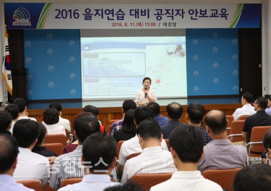 대덕구(구청장 박수범)는 11일 구청 대강당에서 을지연습의 일환으로 공무원 250여명을 대상으로 북한 도발 위험에 대비한 공직자 안보교육을 실시하였다고 밝혔다.