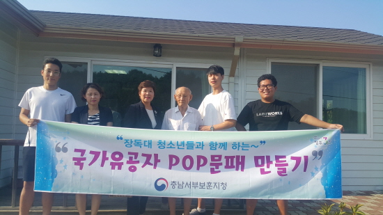 충남서부보훈지청(지청장 안기선)과 장독대 청소년봉사단(홍주고등학교 봉사단체)은 국가유공자에 대한 존경 및 감사의 마음을 전하고자 8월 11일 직접 제작한 POP문패를 국가유공자 집안에 달아드렸다.