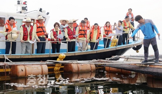 의원들은 시름에 잠겨있는 어민들을 격려하고, 피해 양식장을 차례로 방문해 피해현황을 점검하며 대응방안을 논의했다.