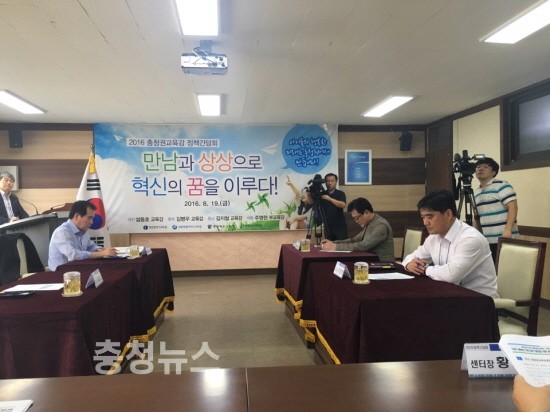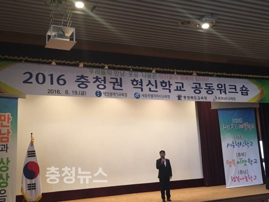 충청권 4개 시․도 교육감은 19일 충남교육연수원 대강당에서 교사, 학생, 학부모가 학교의 주인으로서 자발성과 자율성을 발휘하고 학생들이 미래지향적인 학력을 함양하는 학교혁신정책의 성과와 내실을 높이기 위해 충청권 혁신학교 공동 워크숍과 교육감 정책간담회를 개최했다고 밝혔다.