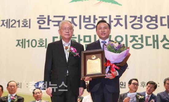 충남 천안시가 19일 한국공공자치연구원(이사장 박우서)이 주최한 제21회 한국지방자치경영대상에서 시민중심 행복천안 실현을 위한 민선6기 성과를 높이 평가받아 ‘종합대상’을 수상했다고 밝혔다.