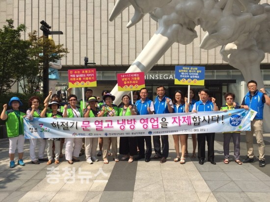 시내 번화가에서 ‘문열고 냉방 자제’, ‘적정냉동 온도 준수’