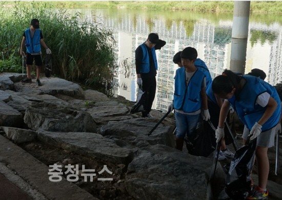 ▲ 하천쓰레기 수거작업 환경정화 활동 / 충청뉴스 최형순 기자