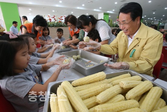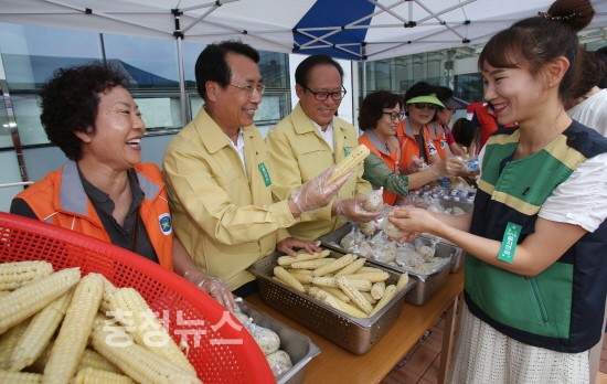 23일 구청 중앙광장에서 주먹밥, 옥수수 등 비상급식