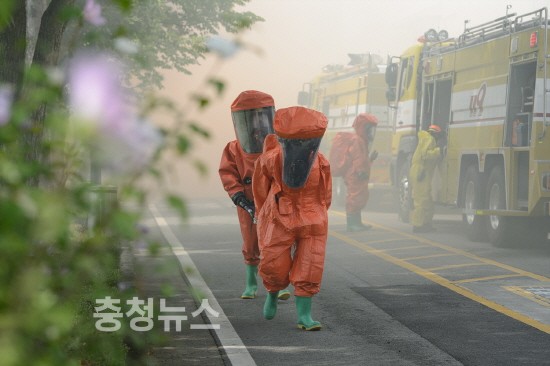 이번 훈련은 조치원소방서와 중앙119구조본부, 경찰 등 22개 기관·단체에서 270여명, 장비 40대가 동원됐으며, 유해화학물 유출에 따른 폭발로 화재와 건물붕괴가 발생해 대규모 피해가 발생한 상황을 연출했다.