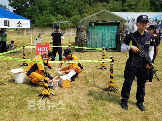 훈련설정은 10월 1일로 흥타령춤축제 거리퍼레이드가 열리는 종합터 미널 앞 야우리광장 관람석에서 IS추종세력의 테러범이 아시아계 테러세력의 확장을 위해 국제적 관심을 끌기 위해 현장에 탄저균(백색가루)을 살포하는 상황으로 전개됐다.