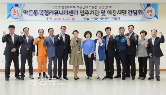 김성렬 행정자치부 차관이 29일 아름동 복합커뮤니티센터를 방문하여 이춘희 세종시장과 함께 주요 시설들을 둘러보고, 입주기관 대표, 주민 등과 간담회를 가졌다고 밝혔다.