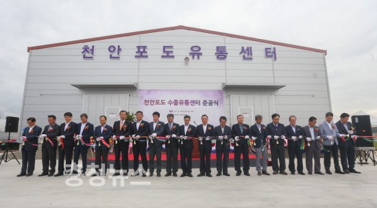 충남 천안시와 천안시설포도영농법인은 30일 하늘그린 천안포도의 국내 유통 및 해외시장 수출확대를 위해 천안포도 수출유통센터(서북구 성거읍 모전1길 329)에서 천안지역 포도재배농가의 숙원이었던 고품질 포도의 공동선별을 위한 포도전문 유통센터 준공식을 개최했다고 밝혔다.