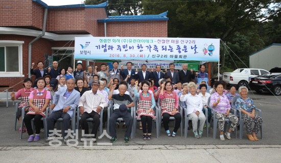 충남 보령시가 기업과 마을간 상생 분위기 확산을 주도하기 위해 30일 오전 주산면 신구2리 마을회관에서 ㈜유런하이테크와 신구2리 마을간 자매결연식을 가졌다고 밝혔다.