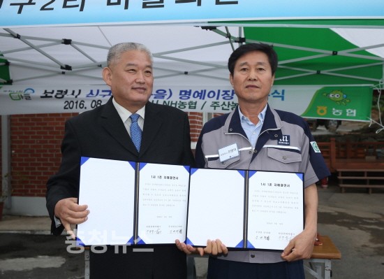 ▲ (주)유런하이테크와 주산면 신구2리 자매결연식 가져