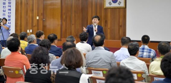 충남 논산시(시장 황명선)는 30일 회의실에서‘참여가 희망입니다’라는 주민참여예산제도 슬로건 아래 15개 읍면동 주민자치위원, 관계공무원 등 240여명이 참석한 가운데 2016년 논산시 주민참여예산 발굴사업 발표대회를 개최했다고 밝혔다.