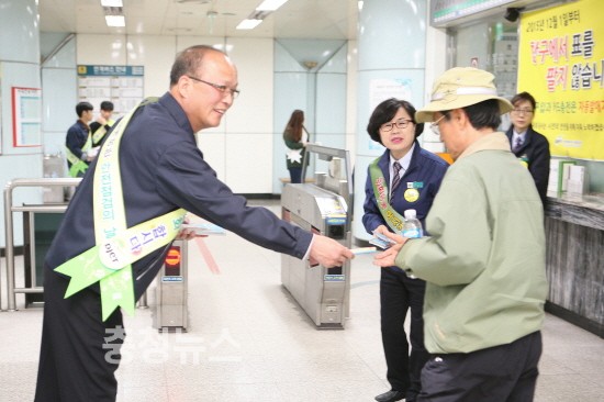 특별 캠페인은 공사 임직원과 안전보건공단 대전지사, 한국승강기안전공단 충청지역본부, 대한노인회 대전지회, 시민 안전지킴이 회원 등 6개 기관 30여명이 합동으로 진행하며, 철도역사 안전수칙 홍보 리플릿과 안전한 철도이용을 안내하는 홍보 물티슈를 배부한다.